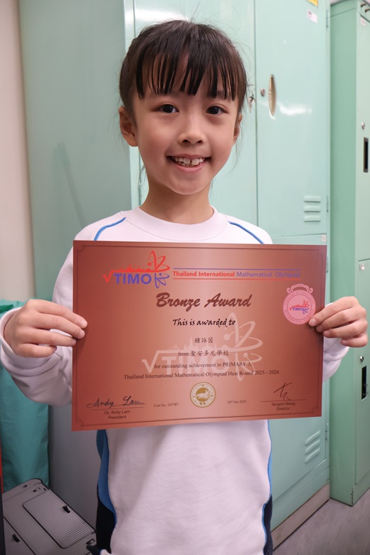 3A鍾詠茵 榮獲 TIMO Thailand international mathematical Olympiad Heat Round 2025-2026 銅獎