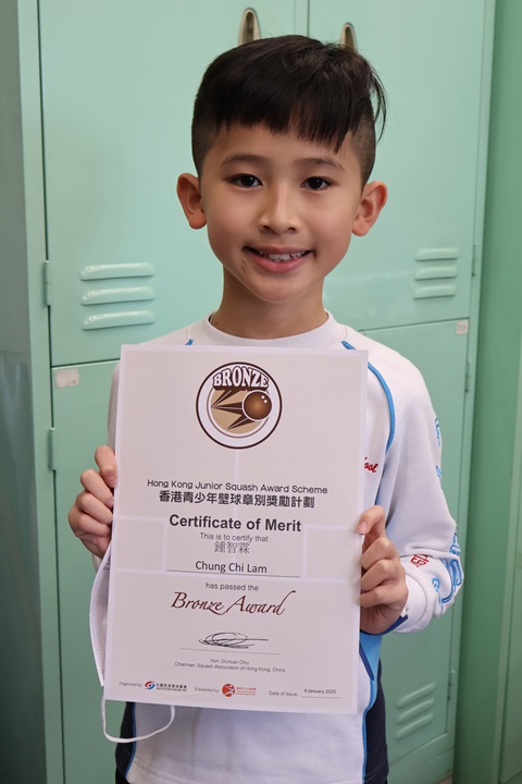 4B鍾智霖 榮獲 香港青少年壁球章別獎勵計劃 銅獎