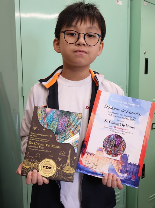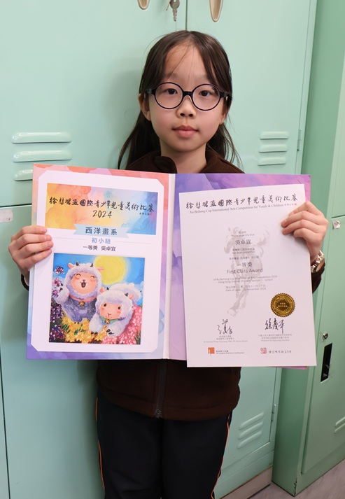 3C吳卓宜 榮獲 第九屆徐悲鴻盃國際青少年兒童美術比賽 香港賽區西洋畫系 初小組一等獎、第十一屆全港兒童繪畫分齡比賽2024 西洋畫(第六組) 亞軍