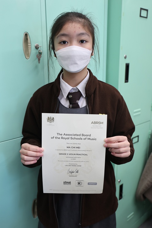 英國皇家音樂學院聯合委員會五級小提琴演奏考試 ABRSM 2 級音樂 優良成績、五級音樂理論考試 ABRSM 2 級音樂 優異成績