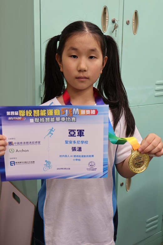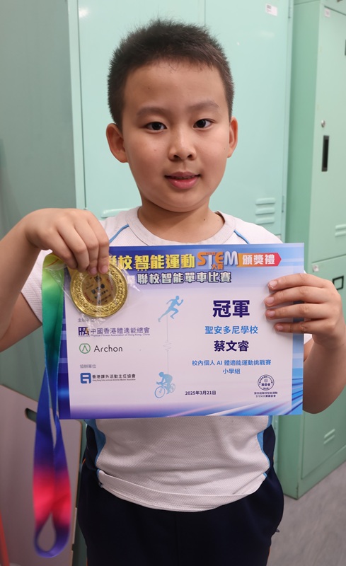 3A蔡文睿 榮獲 第四屆聯校智能運動STEM大賽2024-2025 校內個人AI體適能運動挑戰賽 冠軍、個人萬步獎