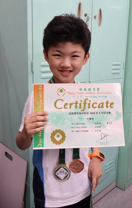 1C方博滔 榮獲 愉園體育會超新星2025年5月短池賽 男子7歲25米蛙泳 第七名