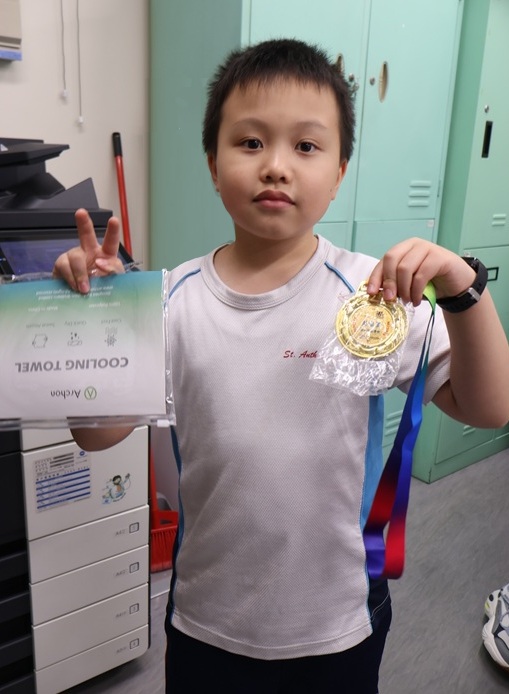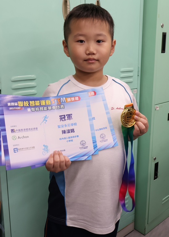 3A陳浚銘 榮獲 第四屆聯校智能運動STEM大賽2024-2025 校內個人最高總步數 冠軍、認識中華文化及港澳保育打卡比賽創意獎、個人萬步獎