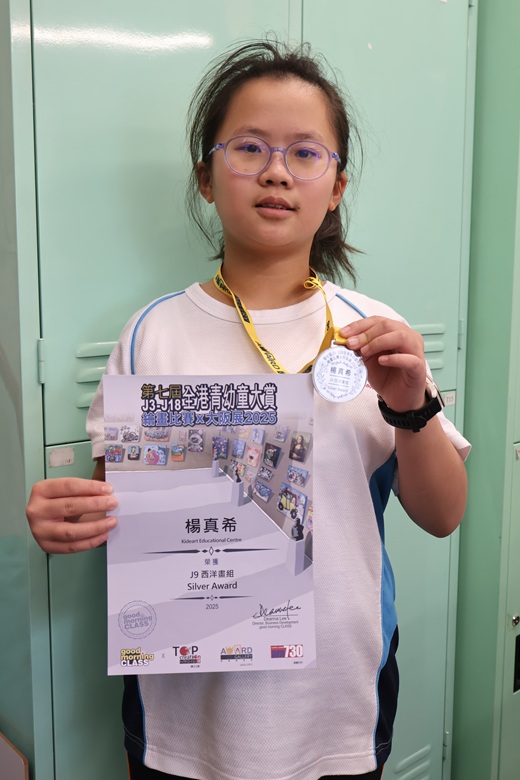 4B楊真希 榮獲 第七屆J3-J18全港青幼童大賞繪畫比賽大阪展2025 J9西洋畫組 銀獎