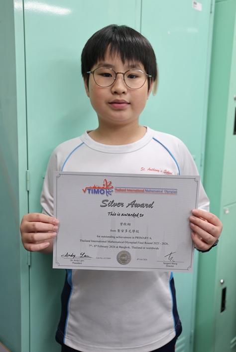 6B曾啟翔 榮獲「大灣盃」粵港澳大灣區數學競賽預選賽2026(香港賽區) 一等獎、TIMO Thailand international mathematical Olympiad Final 2025-2026 銀獎